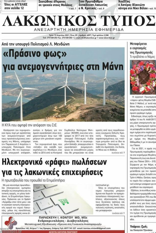 καταγγελθεί αναφορικά με τη χωροθέτηση των αιολικών πάρκων στη